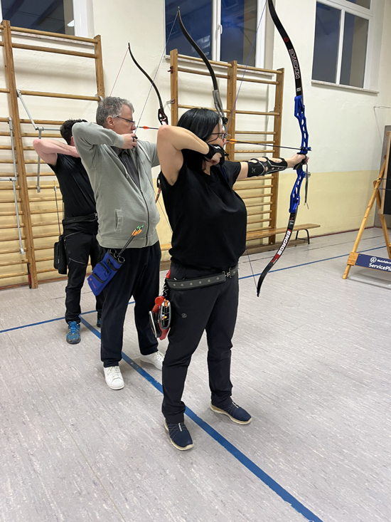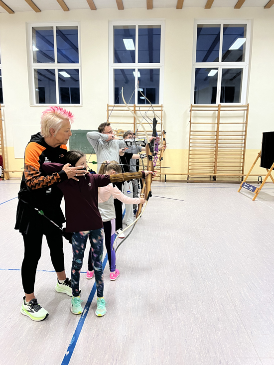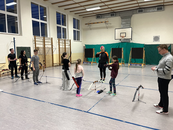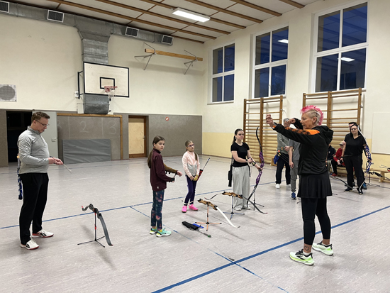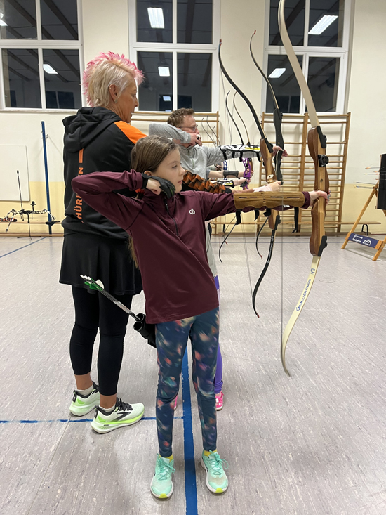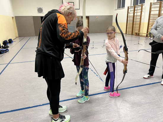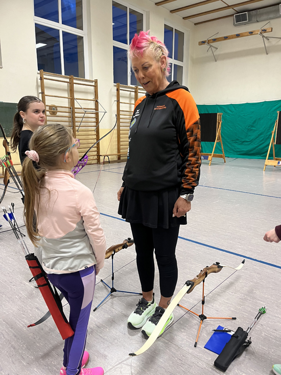 Sie gab uns Tipps zur Ausstattung unserer Bögen, übte mit uns und korrigierte unsere Haltung beim Techniktraining .