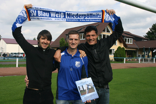 dürfte auf die SG Schmölln noch einiges zukommen. Niederpöllnitz begann furios. Bereits nach 4 Minuten wurde die SG-Abwehr ausgehebelt und Fischer stand goldrichtig bei der Flanke von Tashev, mit dem Senf so seine liebe Mühe hatte. Schmölln zeigte sich wenig geschockt und profitierte davon, dass die Hausherren den Gästen „viel Platz im Mittelfeld ließen“ und „zu weit von den Leuten standen“ (J. Weigelt). So konnten Schwarzer und der nachrückende Barylla gemeinsam mit Stürmer Rettberg Angriffe inszenieren. Außer einem Distanzschuss von Reichardt (9.) kam allerdings nicht viel dabei heraus. Niederpöllnitz bestimmte optisch das Geschehen und war besonders beim Umschalten clever. So auch vor dem 2:0: Mit zwei Kontakten war Zöllner fei gespielt, der sieht aber noch den mitlaufenden Fischer, legt ab und der Torschütze des 1:0 erzielt mühelos die beruhigende 2-Tore-Führung (21.). Nach wie vor zeigte sich die SG bemüht. Zwei Minuten nach dem Gegentreffer zwingt Broda Weißgärber zu einer Glanztat, ehe Anisch endgültig zur Ecke klären kann. In der 27. Minute sehen sich die Gäste in ihren Angriffen belohnt: Rettberg und Anisch hauen gemeinsam an das Leder, der Pressschlag wächst sich zur Bogenlampe aus und überrascht Weißgärber im Kasten. Nur noch 2:1 und Schmölln wollte seine Bemühungen verstärken. Niederpöllnitz ließ aber zunächst nicht viel zu, hatte seinerseits durch den Kopfball Zöllners und den abgerutschten Tashev-Schuss Möglichkeiten. Schiri Läsker hatte bereits die Nachspielzeit angekündigt, da schraubt sich Zöllner beim Freistoß von Fischer hoch und köpft den Ball zum 3:1-Pausenstand in die Maschen.