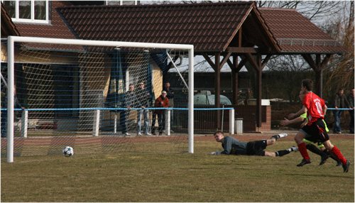 Schlenzer landet im linken Winkel. Der Torschütze und Fischer haben