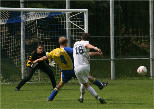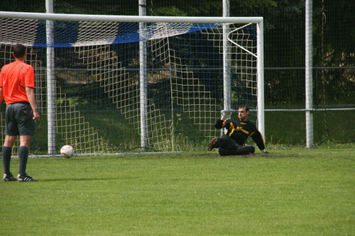 Keine Chance beim Elfmeter für Jens Weißgärber. Das Drama nimmt seinen Lauf Entrüstet über den Auftritt seiner Mannschaft stampfte Behling in die Kabine und kam anschließend ohne Zöllner wieder heraus, dem am heutigen Tag weniger als gar nichts gelungen war. Seibeck sollte nun die einzige Spitze, nun Tashev, einsetzen. Bedenkt man, dass es den Niederpöllnitzern ansatzweise gelang, „nichts mehr zuzulassen“ (Behling), dann kann man sich der Einschätzung anschließen, dass die zweite Hälfte „wenigstens besser ausgesehen“ hatte (Fan). Wenn man allerings berücksichtigt, was Niederpöllnitz an echten Chancen erspielte (Wien/53., Böttger/62.) – dann ist das zu wenig, um in dieser Klasse etwas reißen zu wollen. Der VfR spielte nun sein Ding herunter und kam zu einem Tor des Monats durch den herrlichen Flugkopfball des gerade eingewechselten Nazim (76.). Den Endstand besorgte Hölzel – eine Kopie des 2:0, nur eben auf der anderen Seite des Platzes (84.). Die Niederpöllnitzer waren in Sekundenschnelle in der Kabine verschwunden. Noch schneller waren die mitgereisten Fans gewesen. Die hatten sich bereits nach dem 3:0 verabschiedet. Niederpöllnitz steht vor dem Abstieg. Zwar hat auch der Rest der Kontrahenten verloren, aber es fehlen eben drei Punkte zur Rettung. Meinungen zum Spiel |