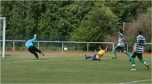 „Er könne sich“, so der Stadtrodaer Trainer Böttcher im Blick auf die Partie gegen Blau-Weiß, „den Absturz der Niederpöllnitzer nicht erklären. Trotzdem wollen wir nicht nur siegen, sondern auch schönen Fußball spielen.“ Vom schönen Spielen konnten die Niederpöllnitzer in den letzten Wochen nur träumen, sieht man mal vom Meuselwitz-Spiel ab. 8 Spiele ohne Sieg, 391 Minuten ohne eigenen Torerfolg, 2 Platzverweise in den letzten beiden Partien – alles Zahlen, die wohl nur die größten Optimisten zu einem Punktgewinn oder gar Sieg gegen Stadtroda im Tippspiel bewogen haben dürften. Niederpöllnitz musste wieder einmal umbauen – Jens Weißgärber fehlte aus verständlichen familiären Gründen und wurde durch Philipp Müller im Tor ersetzt. Die gesperrten Anisch und Theileis (beide können allerdings zum Saisonfinale wieder mit antreten) mussten ja eh draußen bleiben. Blau-Weiß begann engagiert und hielt 15 Minuten den Gastgeber vom eigenen Strafraum fern. Seibecks großartige Chance (1.) und Wiens Schuss (11.) ließen die Gäste chancenmäßig sogar in Führung gehen. Das alles, „weil wir so spielen, wie wir in Meuselwitz gespielt haben“, lobte Trainer Behling seine Truppe. Erst nach 15 Minuten, als die Abseitsfalle von Niederpöllnitz nicht klappt, kommt für den FSV durch B.Engmann, auffälligster Angreifer der Hausherren, die Top-Möglichkeit zur Führung. Aber sein Heber geht knapp über die Latte, weil Werner noch die Sohle an den Ball bekommt. Fast unbemerkt kamen nun aber die „Möhre“-Kicker immer besser in die Partie und hatten durch Becher die nächste Gelegenheit (18.). Innerhalb von 4 Minuten bringt sich dann wieder B.Engmann ins Gespräch: Erst zwingt er Müller im Kasten mit einem halbhohen Schuss zu kleineren Problemen (21.), dann hämmert er erneut mit guter Schusstechnik auf den Gäste-Kasten. Die größte Gelegenheit für Engmann ist dann gleich eine doppelte in der 25. Minute. Zweimal rettet Müller in großartiger Manier. „Wir sind zu passiv, spielen nicht mehr wie zu Beginn über die Außen“, analysierte Behling. Als ob das Seibeck gehört hätte, erkämpft er unweit der Mittellinie den Ball, zieht davon, tunnelt Stiller und erzielt nach 421 Minuten wieder einmal ein Tor für die Niederpöllnitzer Mannschaft. Die hatte dann allerdings Glück, als nach Bechers unendlich lange in der Luft segelnden Freistoß der Stadtrodaer Müller am Niederpöllnitzer Müller vorbeiköpft, aber auch gottlob am Tor (38.). Niederpöllnitz ließ sich nun in der wohl besten Phase der Partie nicht lumpen und vergab durch Wien die Chance zum 0:2 (39.).